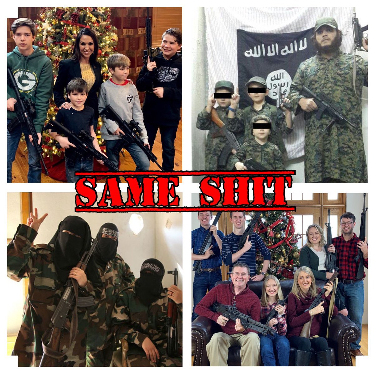#LaurenBoebert and@RepThomasMassie sent these out as Christmas Cards. Both claim to be religious and Massie requested ammunition. They are politicians. This is unacceptable.pic.twitter.com/kjmgM7h6iV