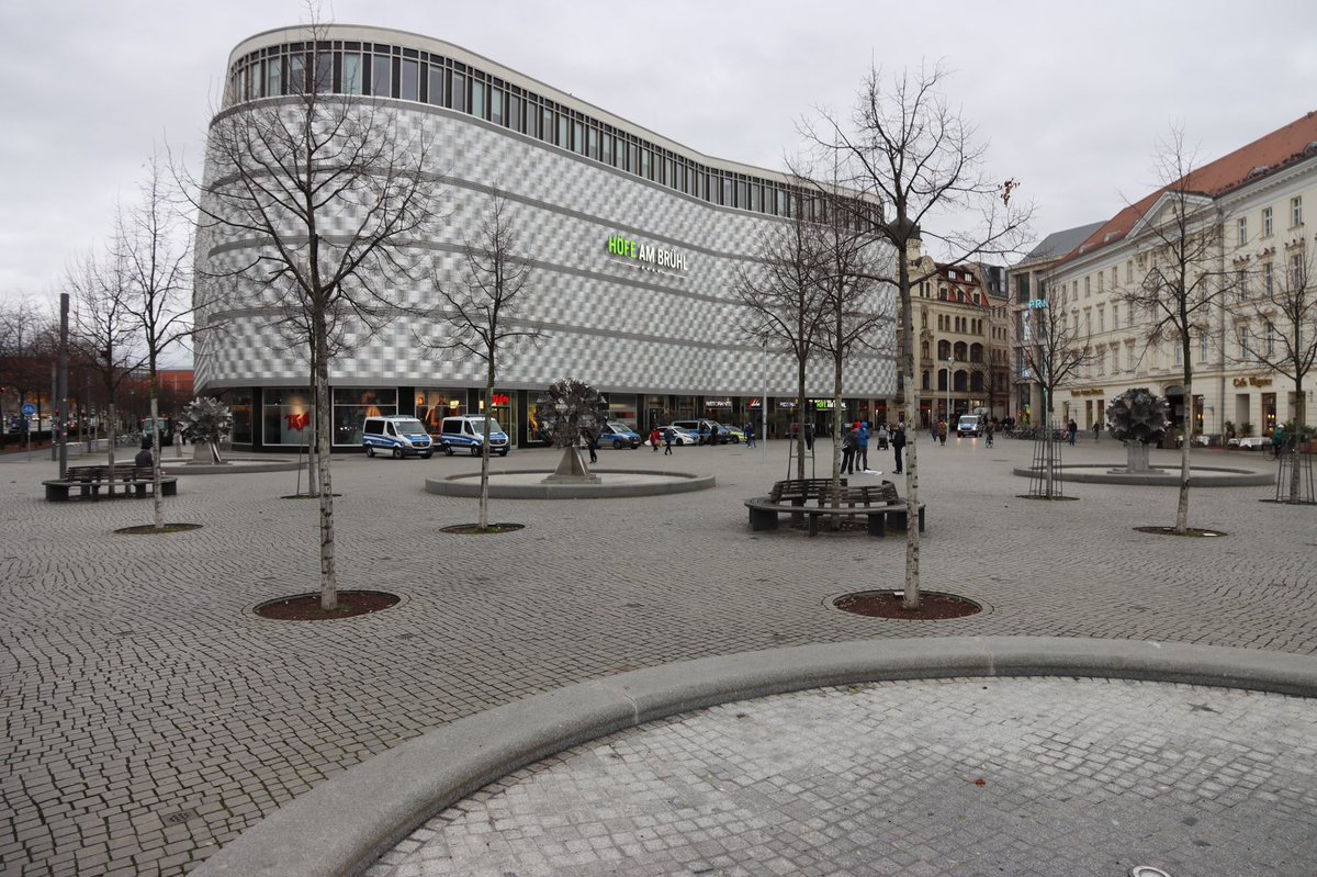 Schwurbleralarm am Augustusplatz . 20 am Goldenen Ei , etliche an Haltestelle, paar an Mendebrunnen