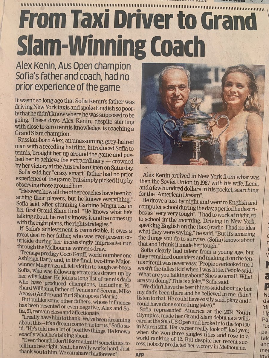 Aus Open champion’s father and coach, has NO prior experience of the game.