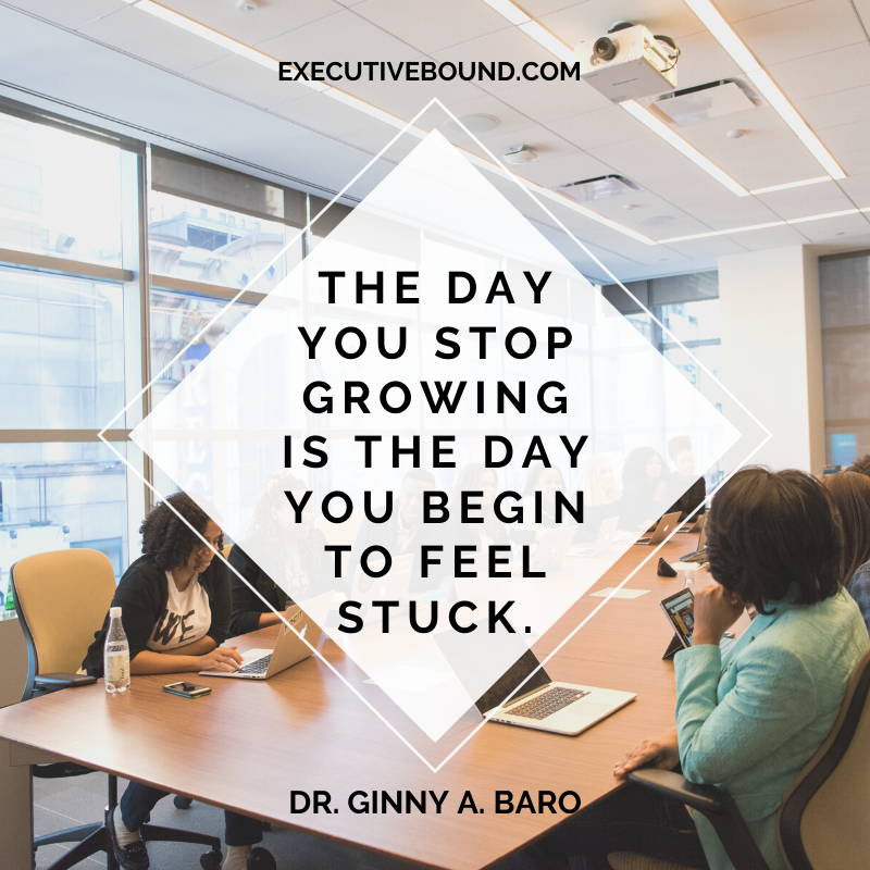 The day you stop growing is the day you begin to feel stuck. - Dr. Ginny A. Baro Learn more and join our community where we share tools and strategies to help you rise to your potential: http://www.executivebound.com