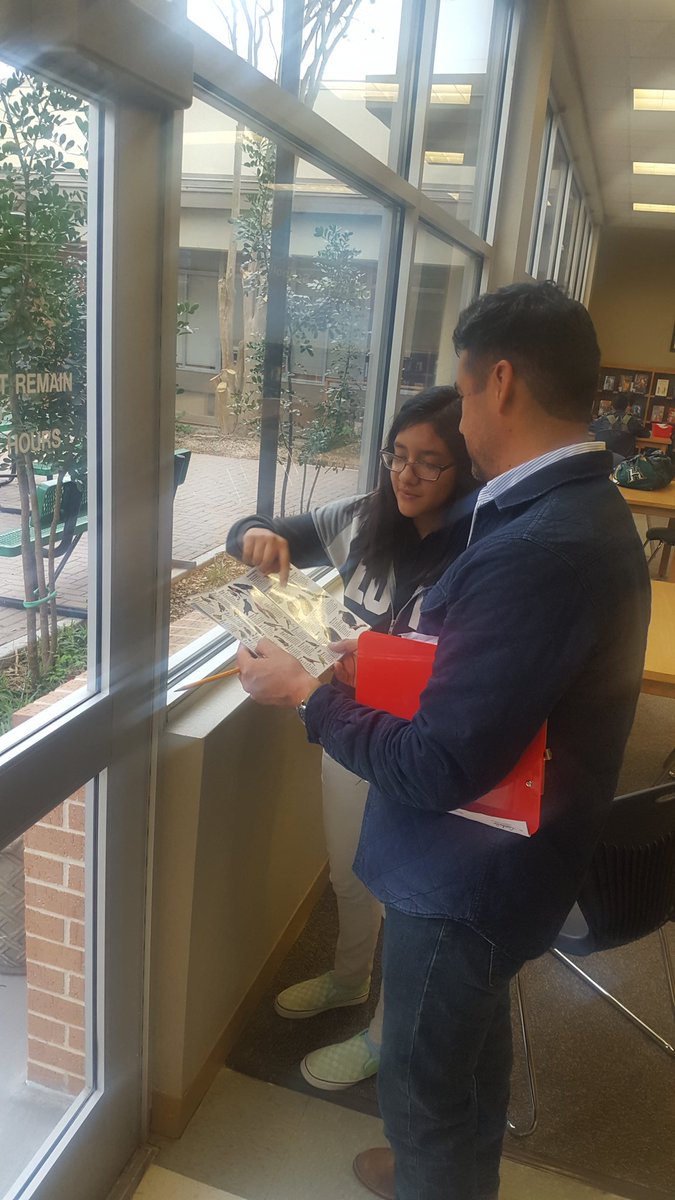 Librarian, gardener...wait, bird watcher too! Our librarian, Mr. Talamantes, teaching one of our kiddos about birds!