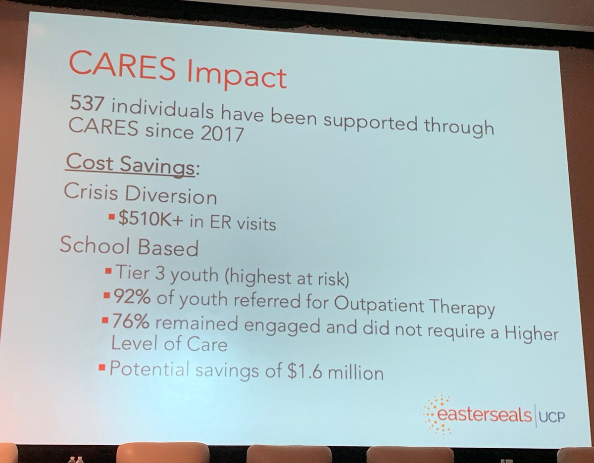 @EasterSealsUCP CARES working on school based care. 100% successfully engaged in enhanced services.#legislativebreakfastmh2020 pic.twitter.com/Yn6Xdai9KX