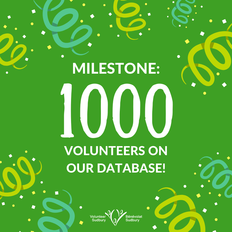 #MILESTONE | It's time to celebrate! Volunteer Sudbury / Bénévolat Sudbury has over 1000 volunteers on our online database!