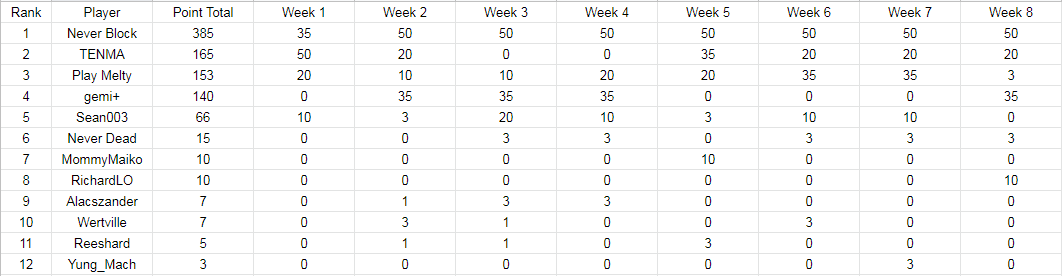 #LFGC UNIST Ranbat has concluded, and here are the results! Top 3 Points Finisher are as follows! 1st:@rawbdaweeb 2nd:@TENMA0105 3rd:@PlayMelty Thank you everyone for your participation, look forward on our next season of Ranbats!pic.twitter.com/BQBEVWoRIQ