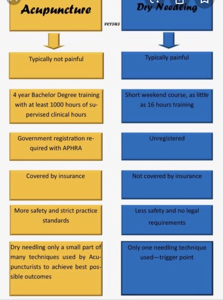 Please don’t confuse the two acupuncture is done by a qualified acupuncturist. Dry needling is offered by physio, chiropractor osteopath doctors nurse. It’s not the same and neither are is effects