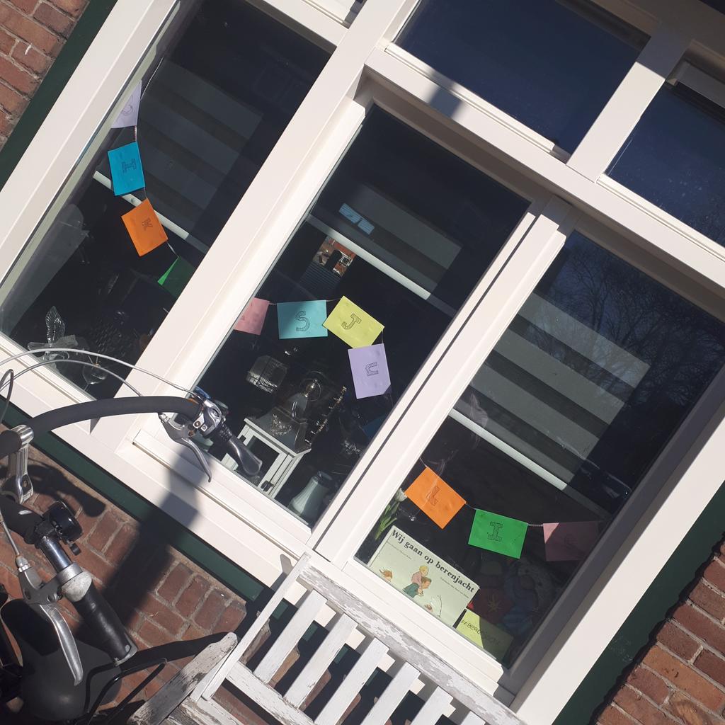 Wat een liefdevol bericht van een kleuter. Een zelfgemaakte slinger met als bericht "Ik mis jullie"