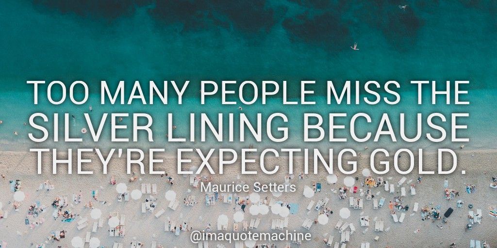 Too many people miss the silver lining because they're expecting gold. - Maurice Setters