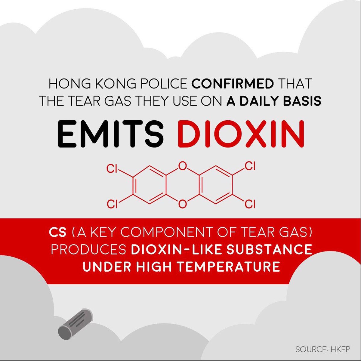 Tear gas used by Hong Kong Police emits a detrimental chemical called dioxin.