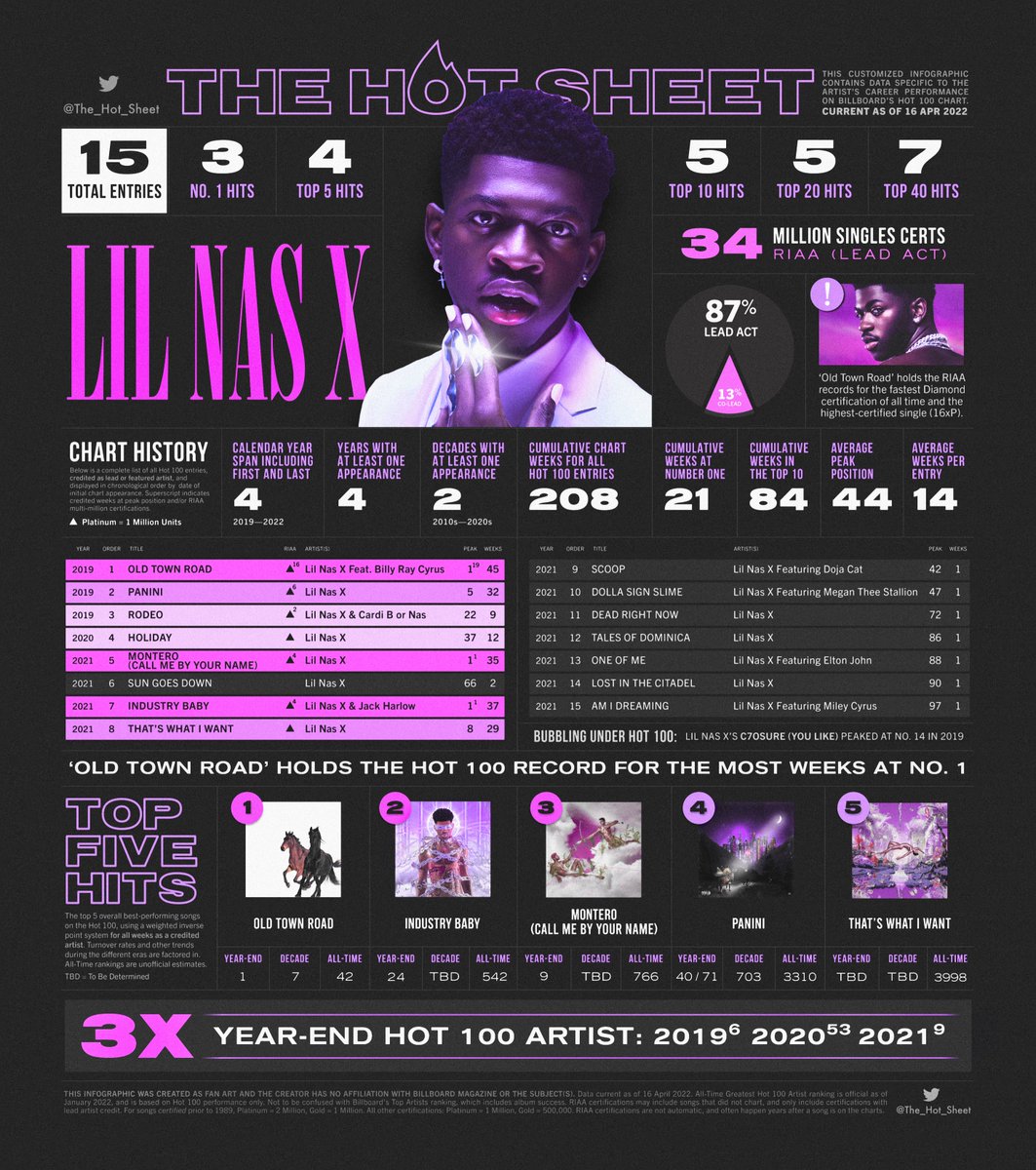 @LilNasX) : Billboard Hot 100 Chart History : Load 4K image for best viewing :#lilnasX pic.twitter.com/OBEE2wRni9