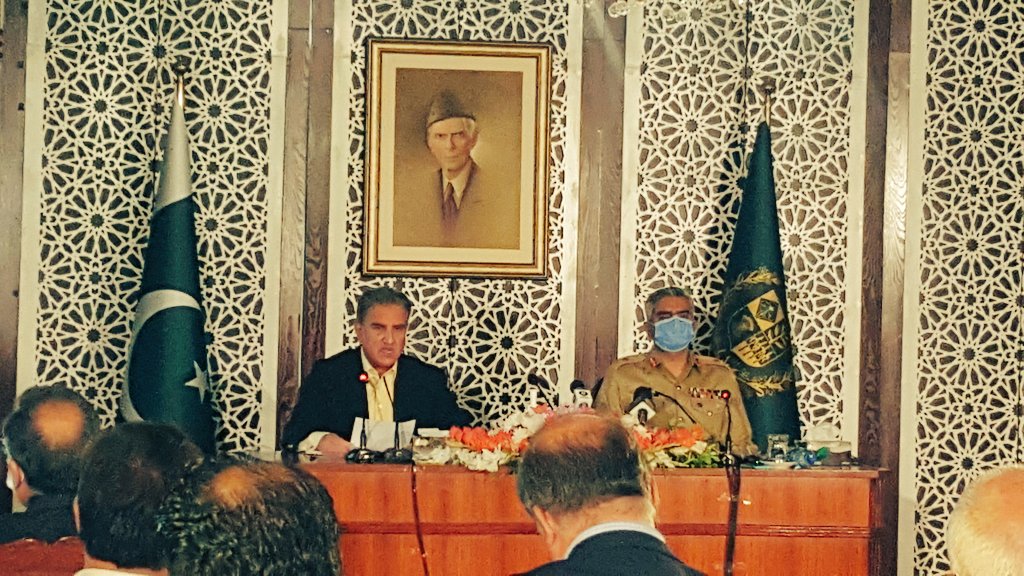 #DGISPR Major General Babar Iftikhar and Foreign Minister@SMQureshiPTI holding press conference on sharing evidences regarding deliberate violations from India on#LOC and killing innocent civilian population#LoC_UnderHeavyFiring pic.twitter.com/aIy8wddYMN