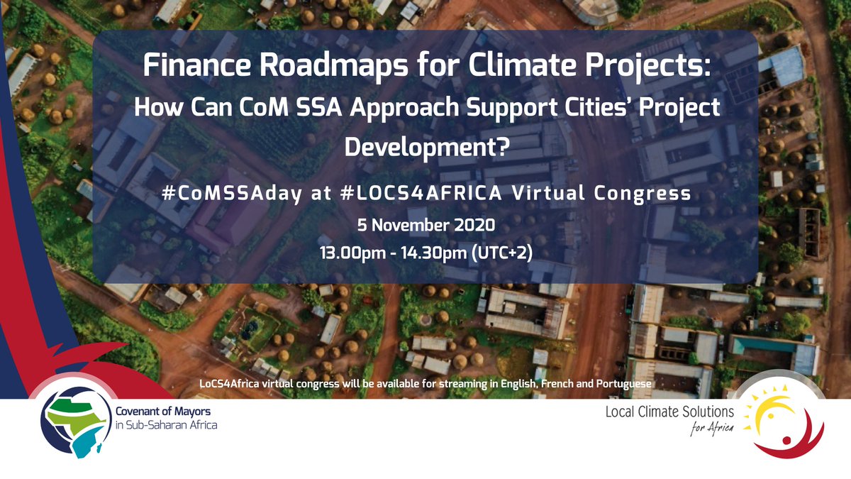 #CoMSSADay | 5 Nov’20 | Looking at how#LocalGovernments in Sub-Saharan#Africa can facilitate access to finance. The#Finance Roadmaps for#Climate Projects Study officially launches on#CoMSSA Day at#LOCS4Africa