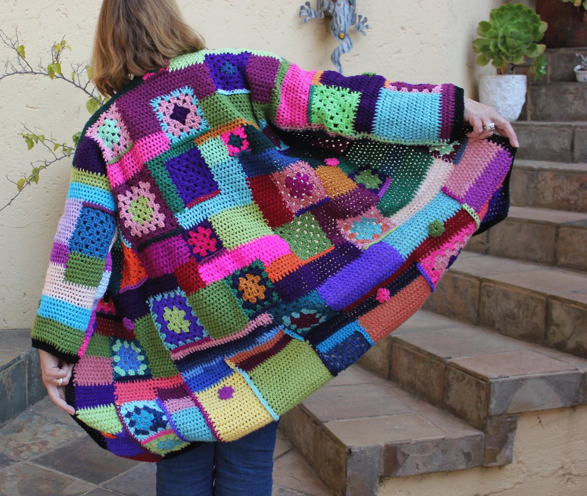 Crochet jacket , Granny Square coat , Textured jacket , Crochet coat , Cardigan , Vintage style jacket , Colorful coat http://tuppu.net/61d4d9