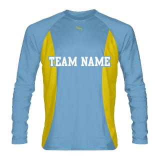 Create your own Long Sleeved Warm Up Shirts in any color pattern or styles. Design and colors get permanently dyed in to the fabric. Then we cut and sew it for shipment all over the world. We call this dye sublimation.