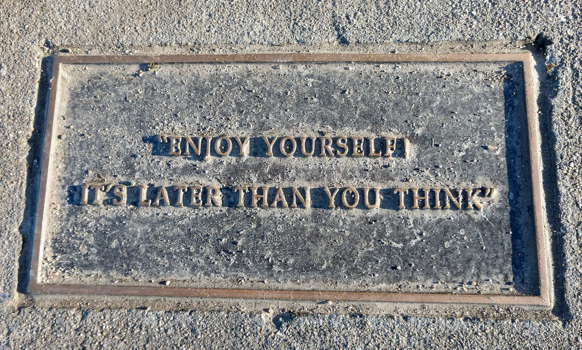 Never noticed these plaques in the cement in front of the benches lining the Charles River before today. "Enjoy yourself! It's later than you think." Pretty fitting message in memoriam... 'Happy' New Year.
