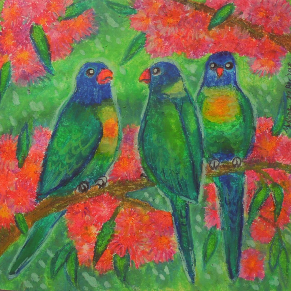 #art#oilpastels#parrots#lorikeets pic.twitter.com/MZCG8CcOGt