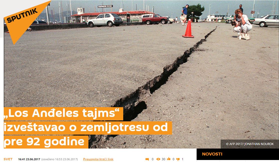 [KADA VEST ZAKASNI JEDAN VEK] >>> „Los Anđeles tajms“ izveštavao o zemljotresu od pre 92 godine