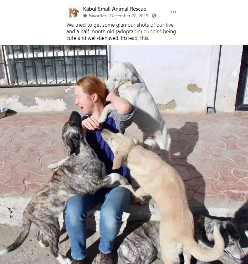 These sweet babies and their mama dog were rescued from a LITERAL GRAVE in Kabul. Thank goodness for the angels at