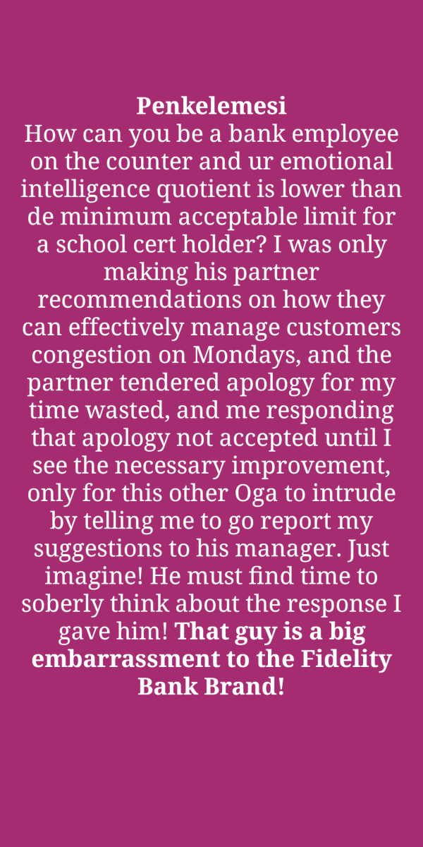 @fidelitybankplc Kindly pay attention to ur#AkureBranch#OndoState! Right there, Monday's are for want of a better word days of#MarathonTorture 4ur#LoyalCustomers. This is the age of#Intelligence at the#SpeedofLight and you must not be left too far behind. Do something.pic.twitter.com/84YpebX7OC