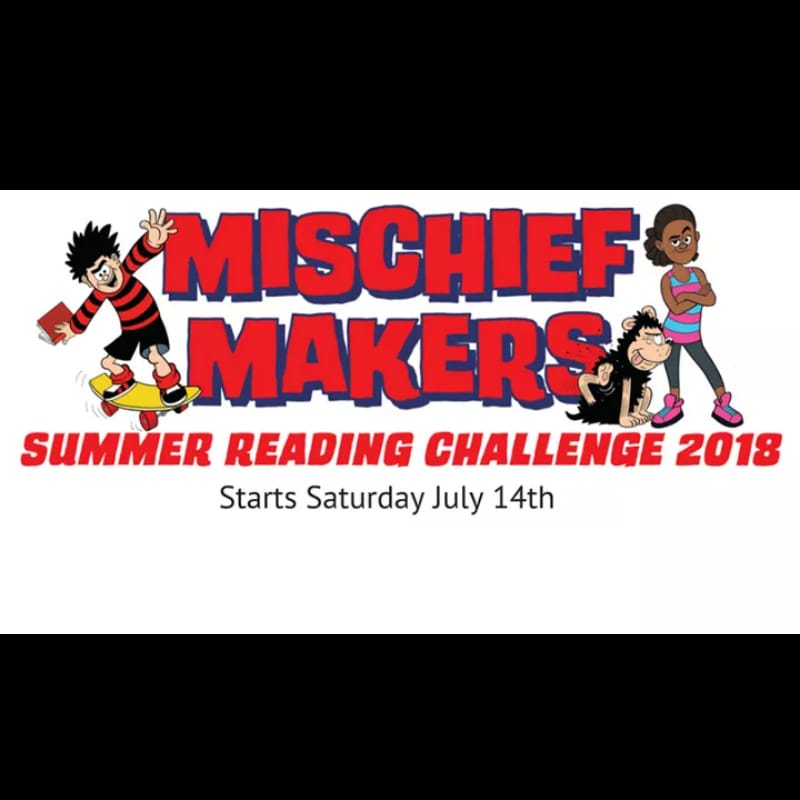 #SummerReadingChallenge in#Lynton Library this Saturday morning from 10 am - midday. Come along and learn how to make a#MischiefMakers bookmark, and you can sign up for the Reading Challenge at the same time!@LyntonLibrary@LibrariesUnLtdpic.twitter.com/DnjDKN54V4