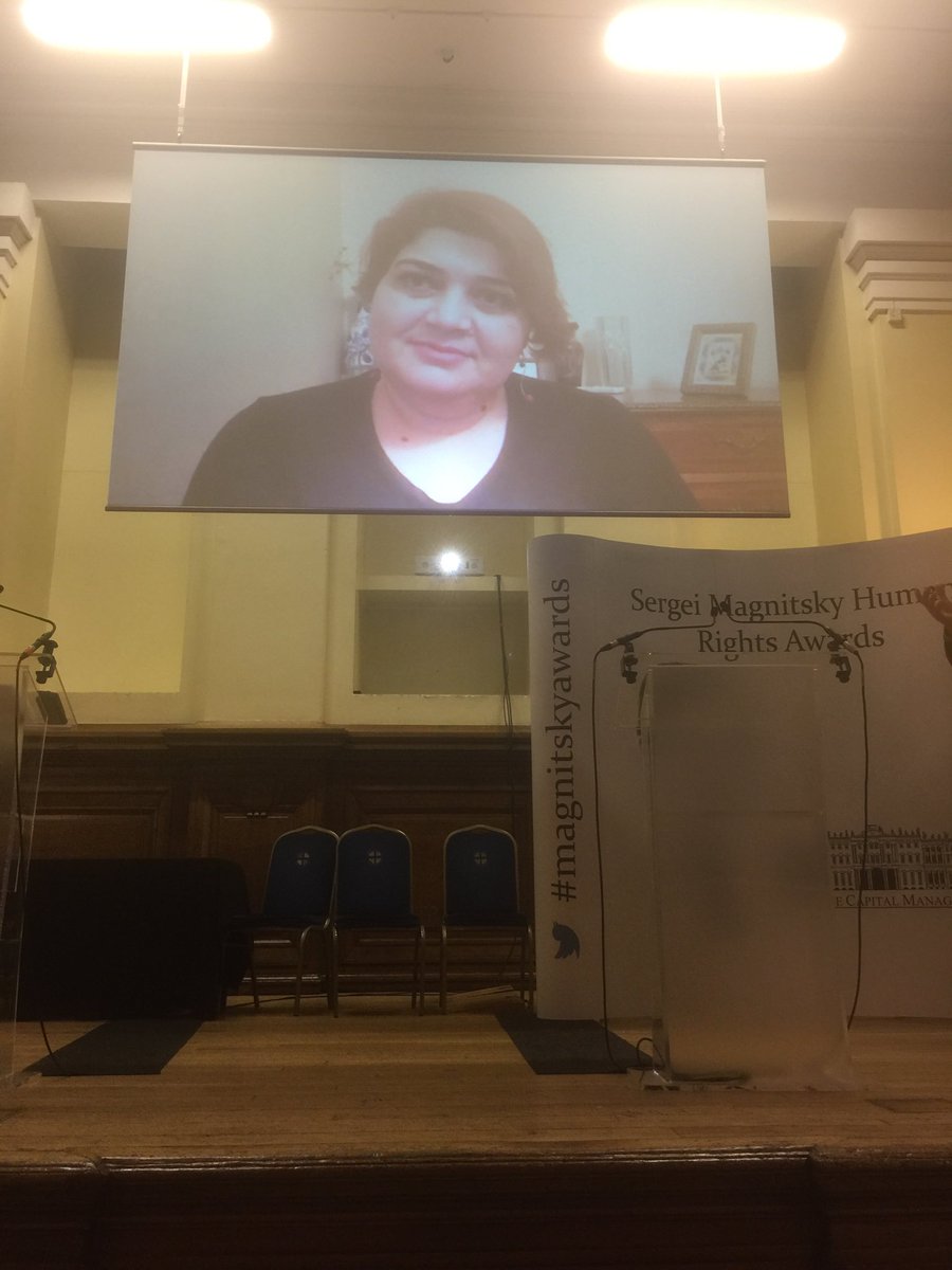 #magnitskyawards for her brave work exposing the corruption of the Azeri gov’t even after being jailed pic.twitter.com/RkqZJbkWAM