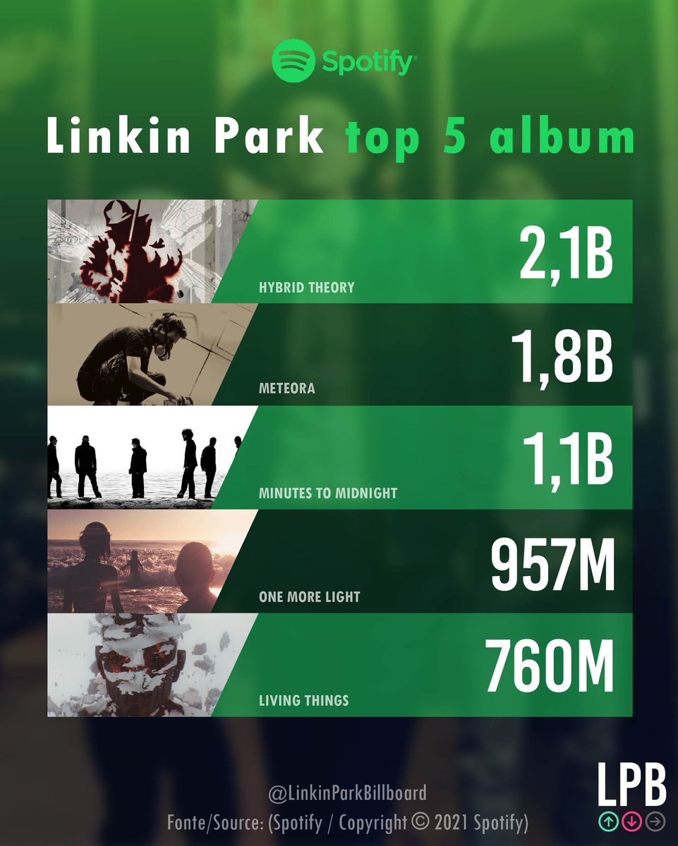 @linkinpark has more than 8,6 billion streams on@Spotify, with three albums surpassing 1 billion streams (soon#OneMoreLight should join the list). ○#LinkinPark#Spotify#MakeChesterProud#LinkinParkBillboardpic.twitter.com/paD4KLu4OX