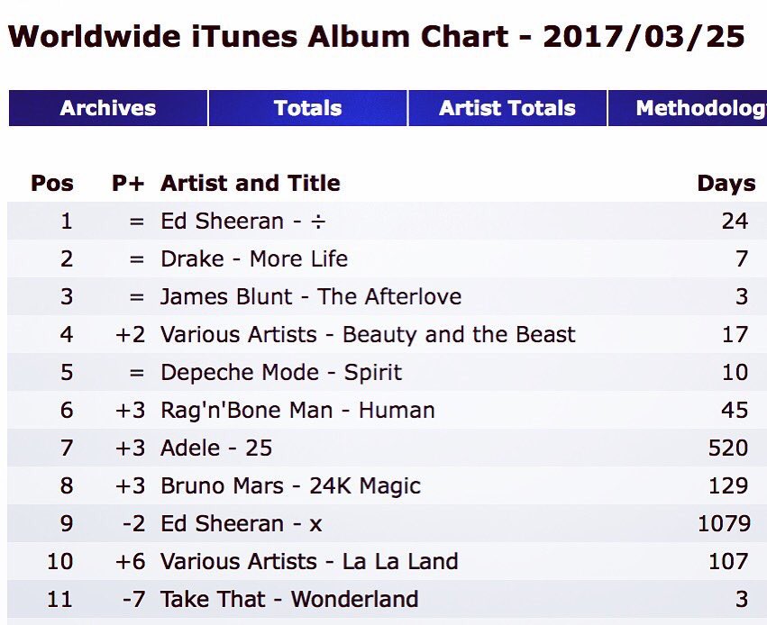 2 of top 3 artists on Worldwide iTunes Album Chart together on #DivideTour@edsheeran@JamesBlunt#makejamesbluntgreatagain pic.twitter.com/MT0sLtt6sI