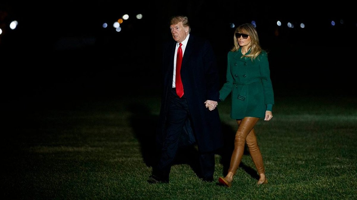 President Donald Trump and first lady Melania Trump as they arrived on the South Lawn of the White House after making a surprise visit to troops in Iraq,