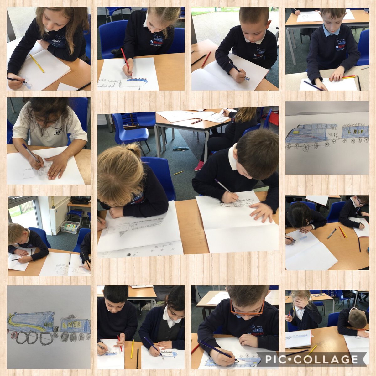 This afternoon in art the children used their drawing skills to create a picture of the Mallard steam train.