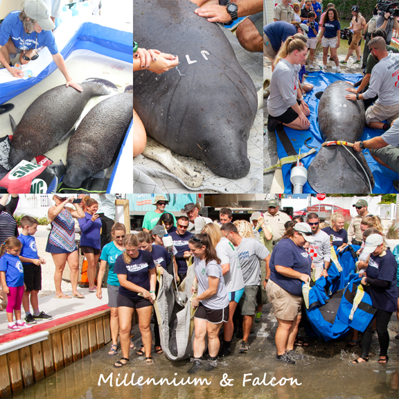On 10/2/16, DRC & the FWC rescued orphaned manatee twins that were approx. 6 mos. old. (Upper left photo) Two years later on 11/15/18, after rehabilitation and time to grow up, we helped return them to FL Keys waters. Swim on, Millennium & Falcon!