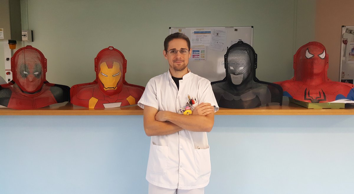 #radiothérapie deviennent des masques de super-héros : une merveilleuse idée de Geoffrey Richard, "supermanip" à l'#APHM !!