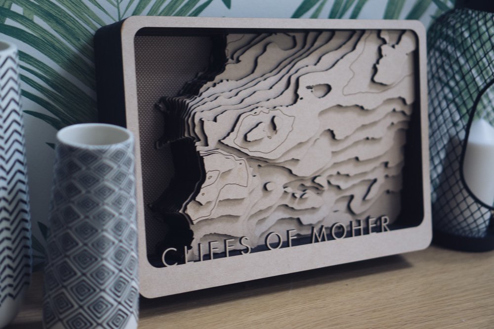 Another Custom Topo Done. This Is a monster. 16 Layers. The Cliffs of Moher in Ireland. Hand Made with a water etch. One of my favourites that ive made and a location id have never thought of without a commission. available at http://www.overview.design
