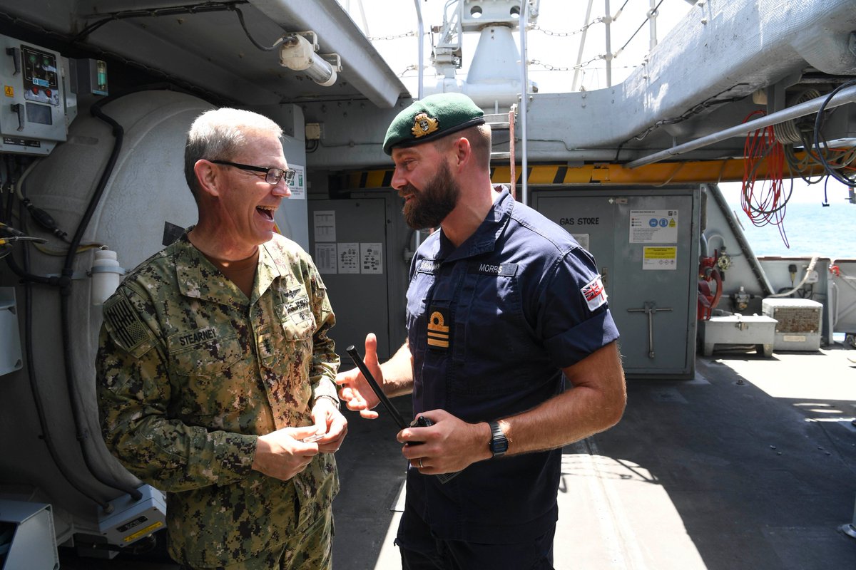 @US5thFleet visits his UK/US Mine Counter Measures Task Force whilst they exercise their ability to provide freedom of navigation to the Gulf by locating and destroying drill mines during MCM Exercise 18-2.@RoyalNavy@US5thFleet#maritimesecurity#partnership pic.twitter.com/GYUoyUJUZp