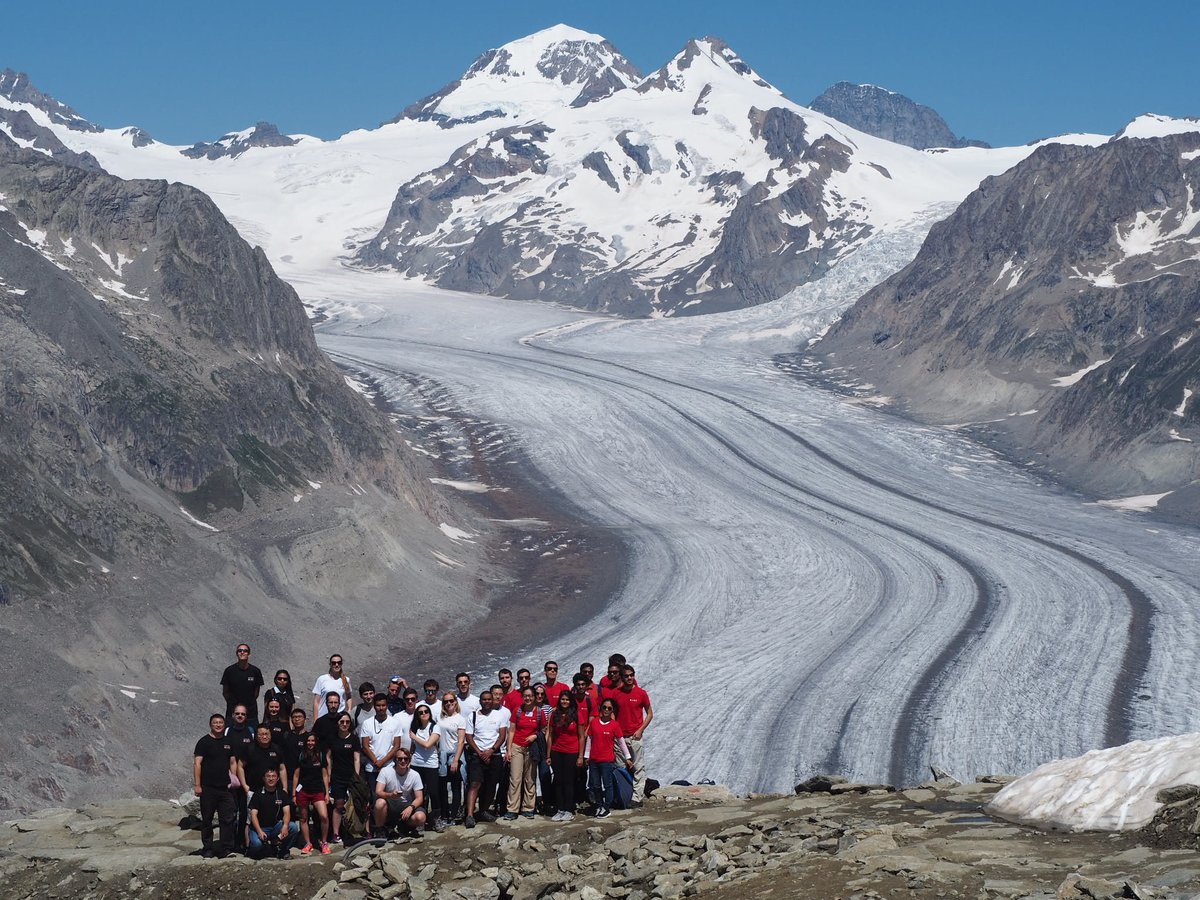 @nccr_marvel standing next to the Aletsch glacier, Europe's longest, during the 2018 junior retreat. Attendees are "happy, learning and fostering collaborations"!#teambuilding#materials pic.twitter.com/EufVvIz1xg