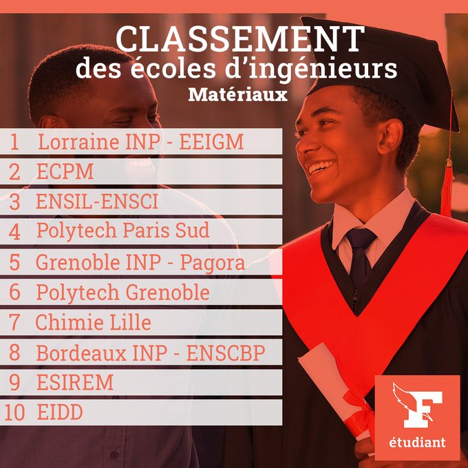 @EEIGM_officiel classée 1ère des écoles d'#ingénieurs en#matériaux dans le palmarès 2020@Figaro_Etudiant : qu'attendez-vous pour candidater ? Attention date limite 15 mars pour l'entrée en 3ème année et 22 mars pour l'entrée en 1ère année. http://eeigm.univ-lorraine.fr/fr/admissions pic.twitter.com/6eUEn22XOv
