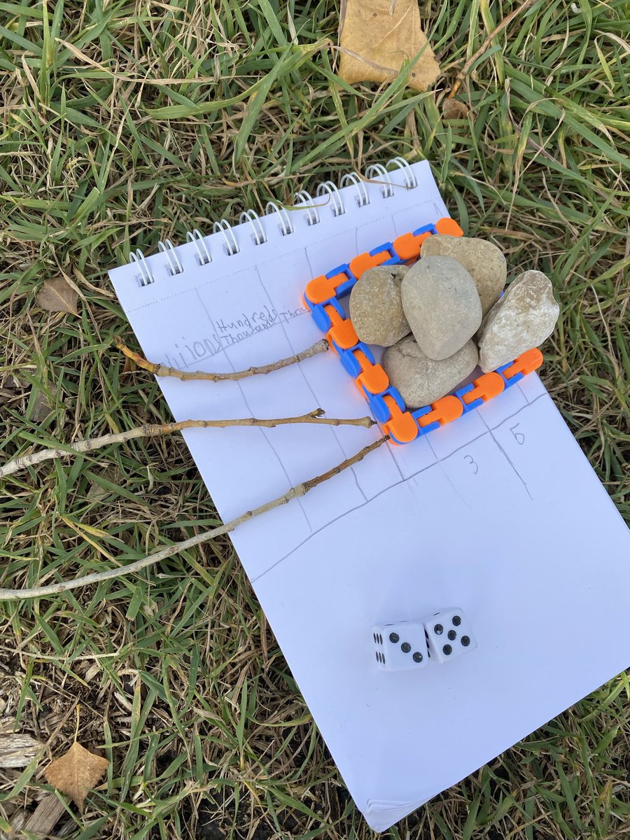 Leaves are hundreds, sticks are tens, and rocks are ones! Let’s search & build