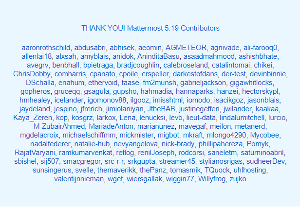 Huge THANK YOU! to all our contributors for Mattermost 5.19.
