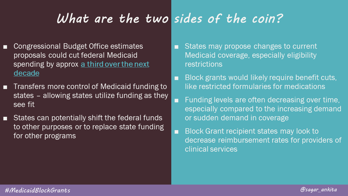 #MedicaidBlockGrants coin hence sparking a passionate debate: limited resource + state freedom vs. coverage + access to care#policycapsulepic.twitter.com/eR4FIXcXt8