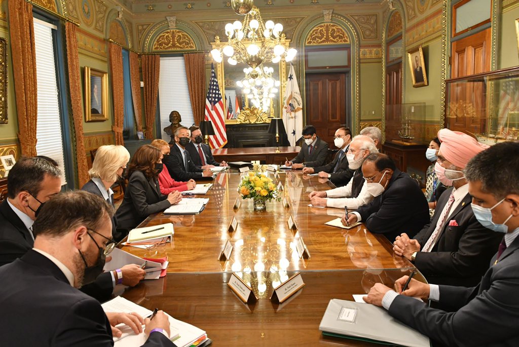 @narendramodi US Vice President Kamala Harris before commencing delegation-level talks. This is their first in-person meeting.#meeting#USpic.twitter.com/J8y0JMHZBu
