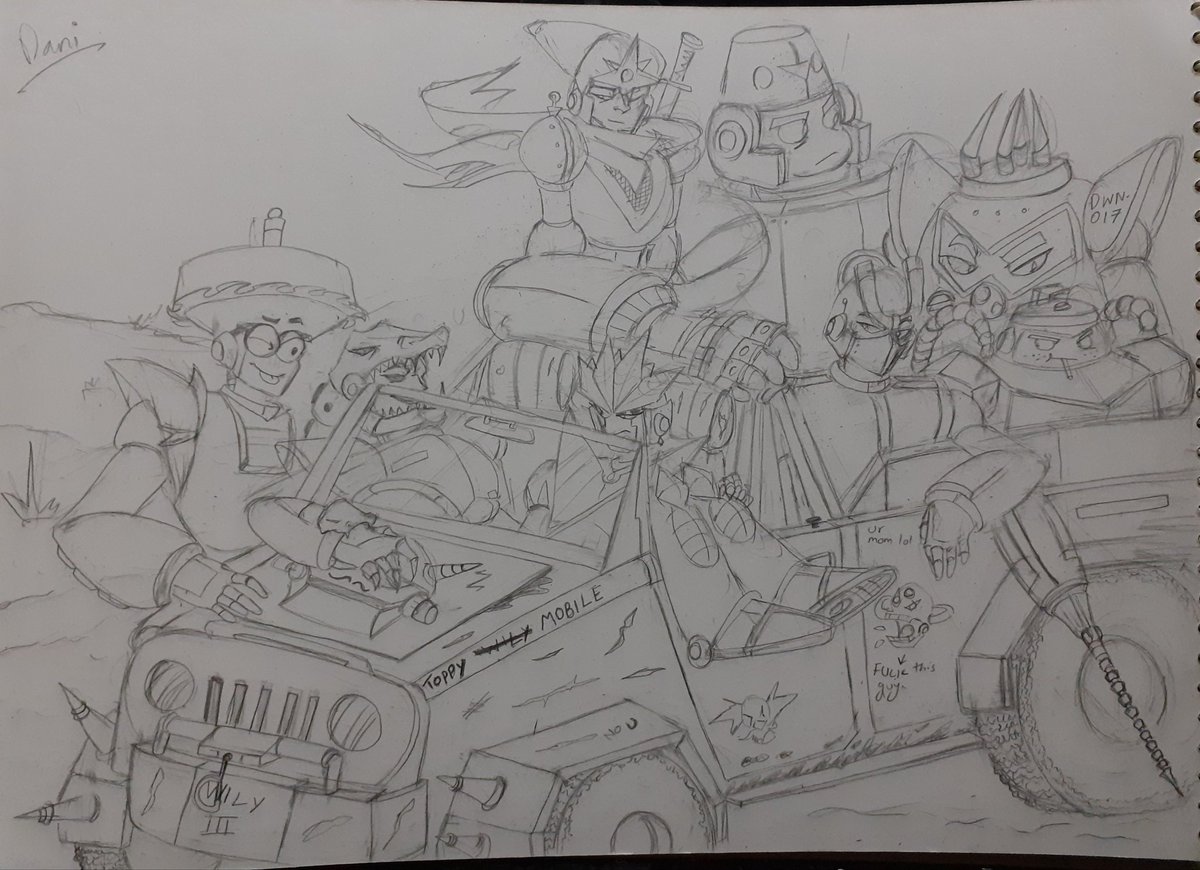 Bueno, aqui el dibujo terminado. Tengo que admitir que Top Man me complicó mas dibujarlo. :/ Peeeero, me encanto dibujar a Needle, Magnet, Gemini, Hard, Top, Snake, Spark y Shadow Man juntos.
