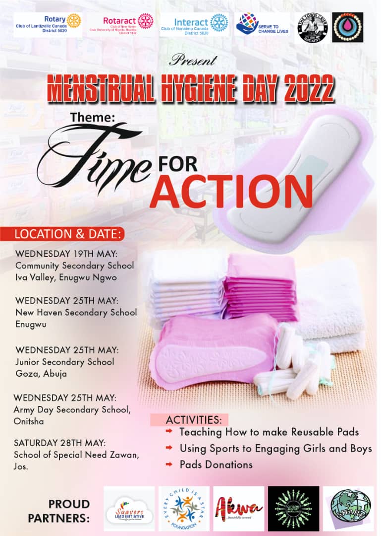 On average a woman menstruates for about 7 years during their lifetime. This year Menstrual Hygiene day is celebrated under the theme "It's Time for Action'. Save a date "28 May"
