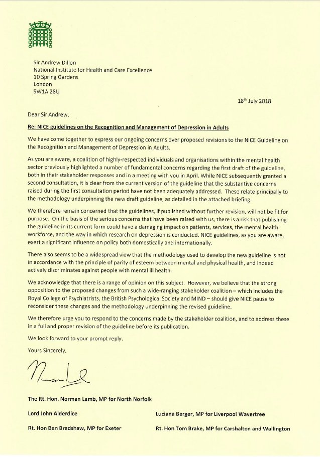 #mentalhealth sector that NICE's draft guideline on Depression is not fit for purpose & could have a damaging impact on patient care.@NICEcomms must reconsider! Important cross-party letter with@lucianaberger@Helen_Whately@DrLisaCameronMP & otherspic.twitter.com/oaXC85JIu7