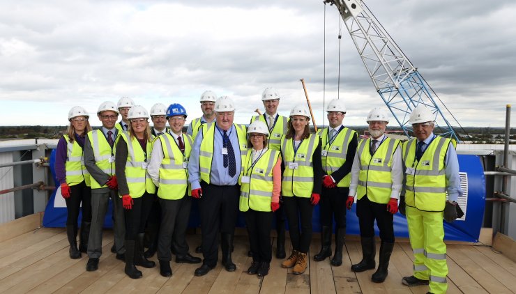 York Community Stadium – Topping out Ceremony Partners and representatives from all organisations involved in the project came together at the top of the cinema building, the tallest point of the complex, to celebrate the topping out.