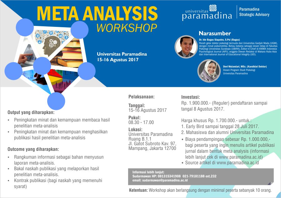 #metaAnalysis http://www.paramadina.ac.id/home/homepage-news/meta-analysis-workshop.html …@AyudwiNindyati@alfikaliapic.twitter.com/qjJQ3pAacI