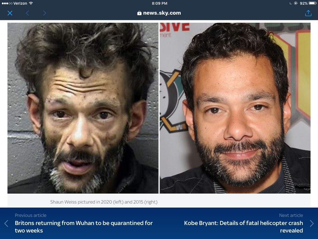 #methamphetamine - Holy shit - a picture speaks a thousand words huh- poor bugger...Stay off Meth kids ^^ https://news.sky.com/story/mighty-ducks-actor-shaun-weiss-arrested-for-burglary-while-on-methamphetamine-11920647 … -