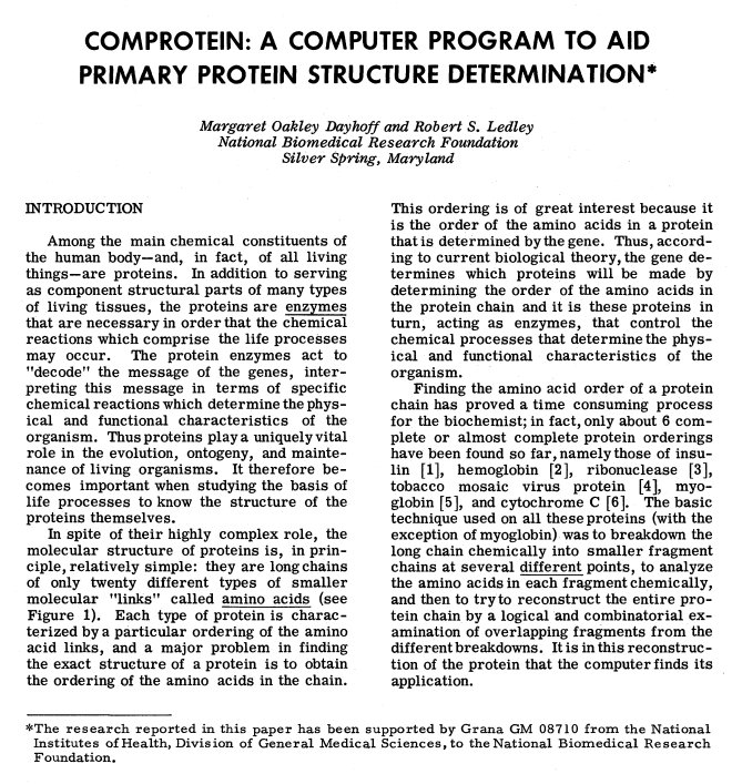 #methodsmatter!). This is from the earliest publication I know that describes bioinformatics performed with a computer, in 1962. https://dl.acm.org/citation.cfm?id=1461546 … pic.twitter.com/elQpIsbexW