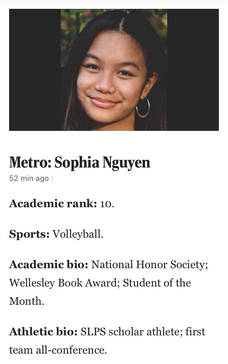 Congratulations to Sophia- Post-Dispatch Scholar Athlete