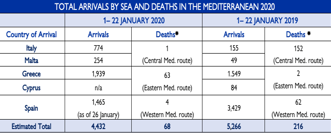 #migrant arrivals reach 4,432 in 2020; deaths reach 68, reports@UNmigration: https://is.gd/pNCDwB pic.twitter.com/Oi4a9QWiHO