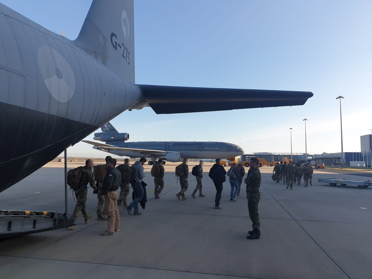 #militairen uit Irak terug naar NL. Zij keren tijdelijk terug nu hun trainingsmissie stil is gelegd a.g.v. het#Coronavirus.#Defensiepic.twitter.com/ArFL1YSHSv