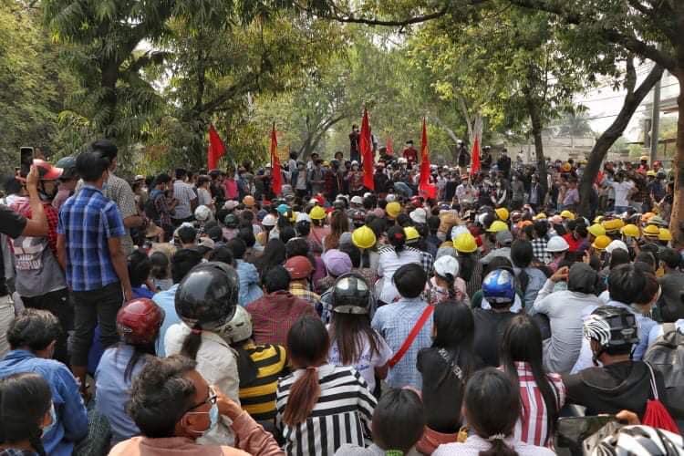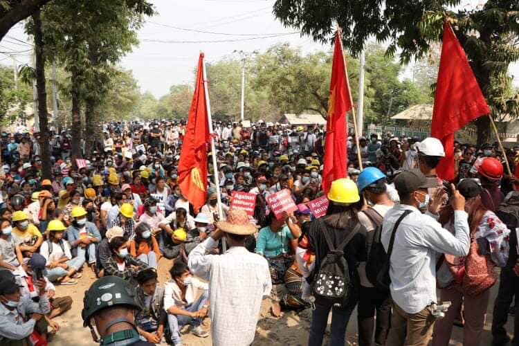 Protest against #military Junta ongoing day & night through out the country despite the intensification of killings, arrests & deadly attacks against civilian.#R2PNOW#WhatsHappeningInMaynmarpic.twitter.com/6wb2rZbrTK -