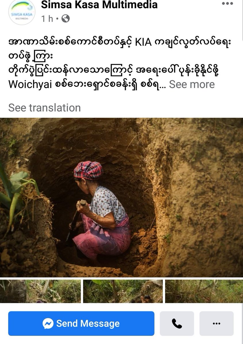 #Myanmar's northern#Kachin fearing for safety by digging hideouts to take cover as conflicts escalate between#ethnic armed group#KIA &#military. Happening to group of some 7,000 IDPs near#Laiza#WhatsHappeningInMyanmarpic.twitter.com/NKlRThVM8j